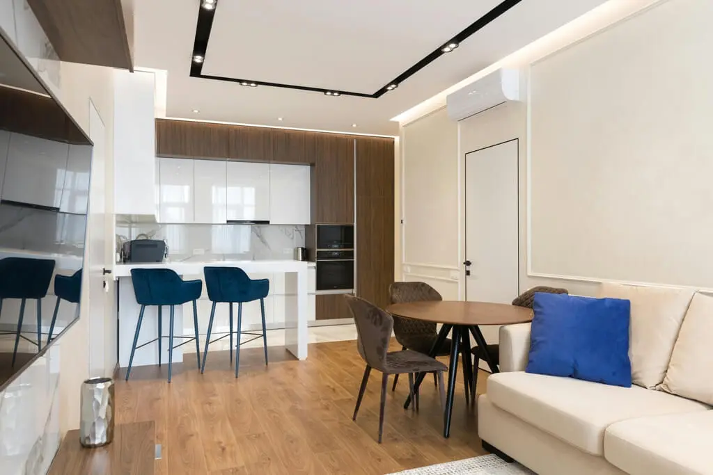 Дори в малък апартамент може да се обособят отделни зони за почивка, работа и хранене. Използването на различни килими, преградни стени или мебели като визуални разграничители може да помогне за създаване на функционално жилище, без да се губи усещането за простор.